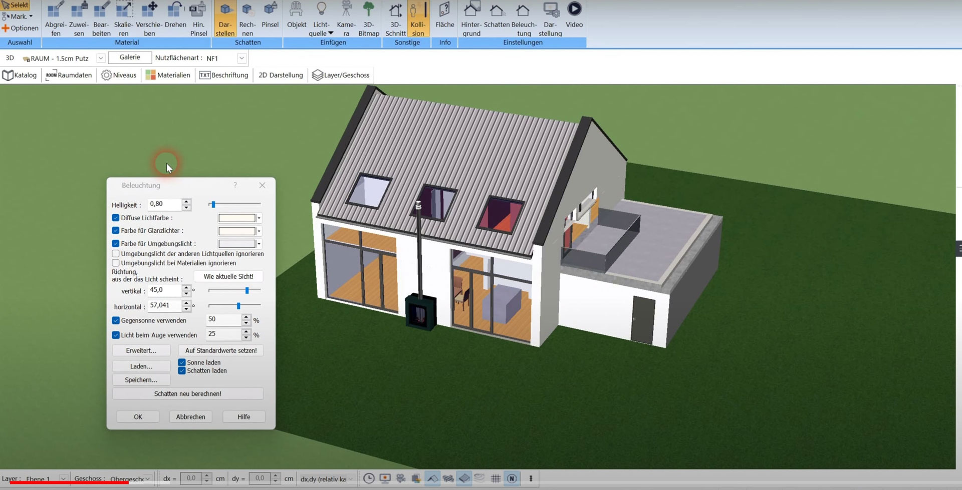 Einstellen der Lichtparameter in Plan7Architekt Pro